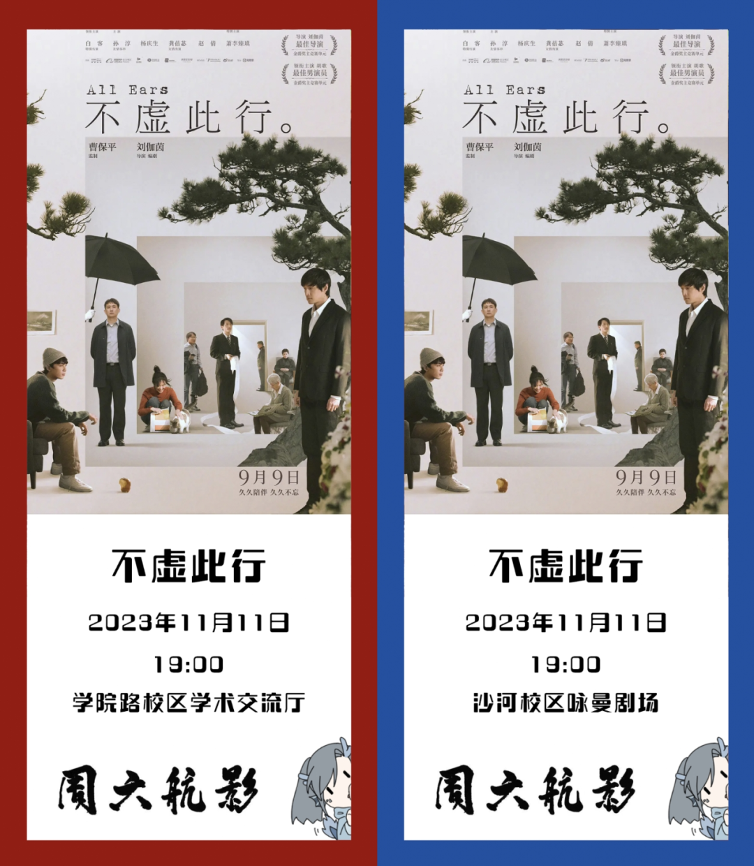 11月11日(周六)19:00,《不虛此行》將于學(xué)院路校區(qū)學(xué)術(shù)交流廳和沙河校區(qū)詠曼劇場同步放映!