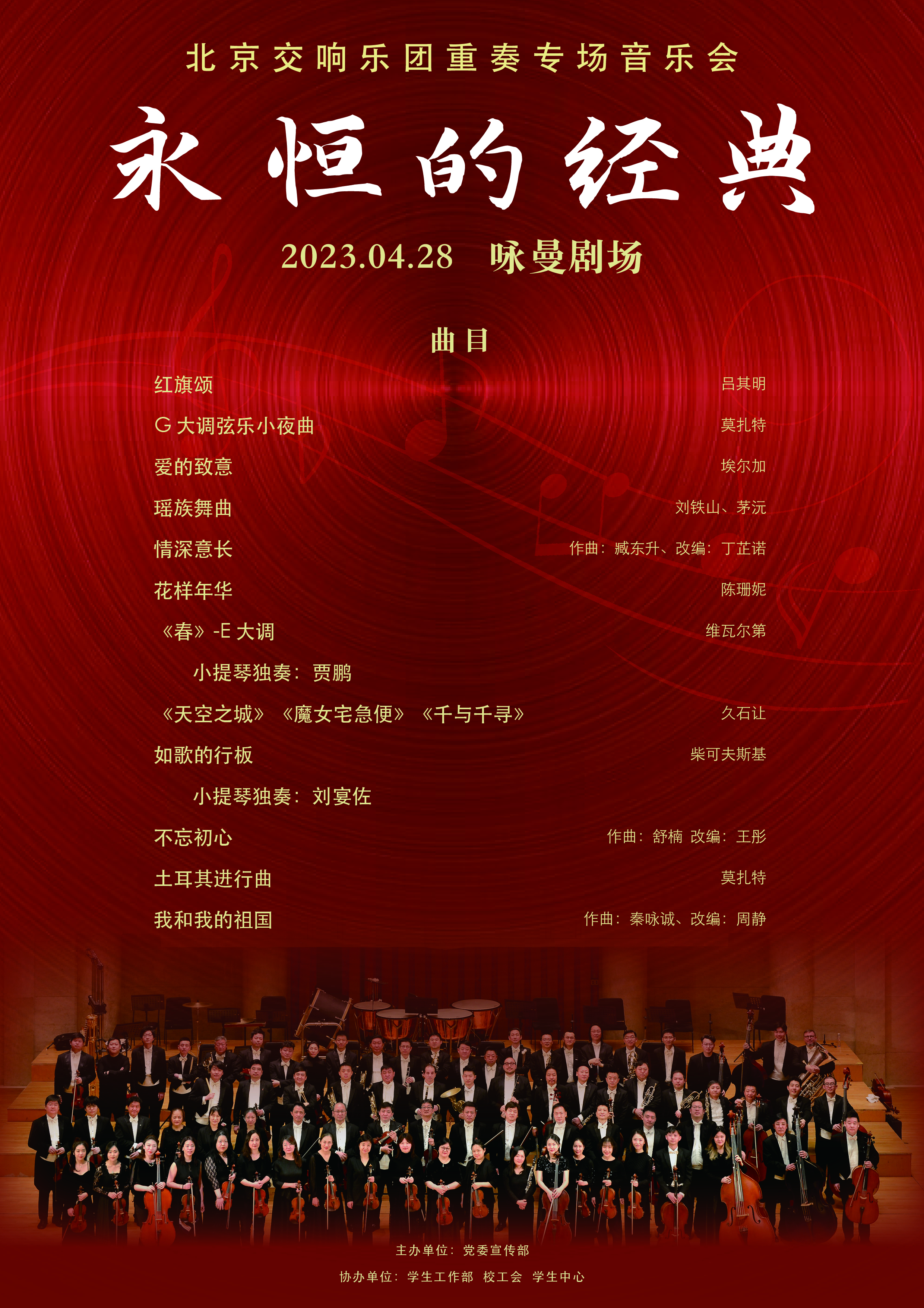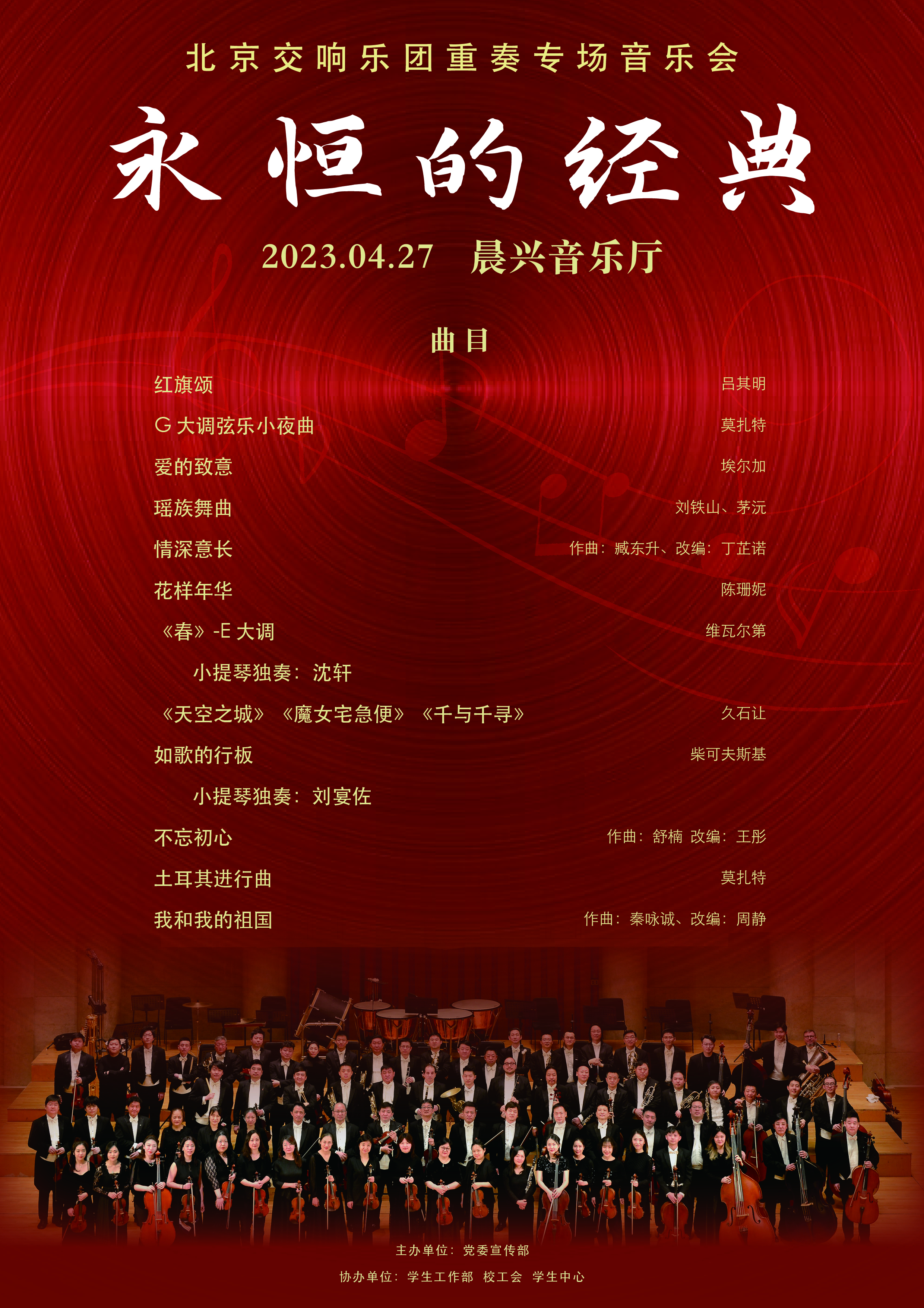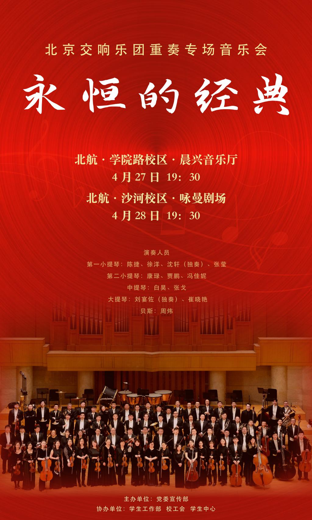 “永恒的經(jīng)典”——北京交響樂團(tuán)重奏專場音樂會(huì)將于周四(4月27日)19:30,周五(4月28日)19:30先后在學(xué)院路校區(qū)晨興音樂廳、沙河校區(qū)詠曼劇場上演。