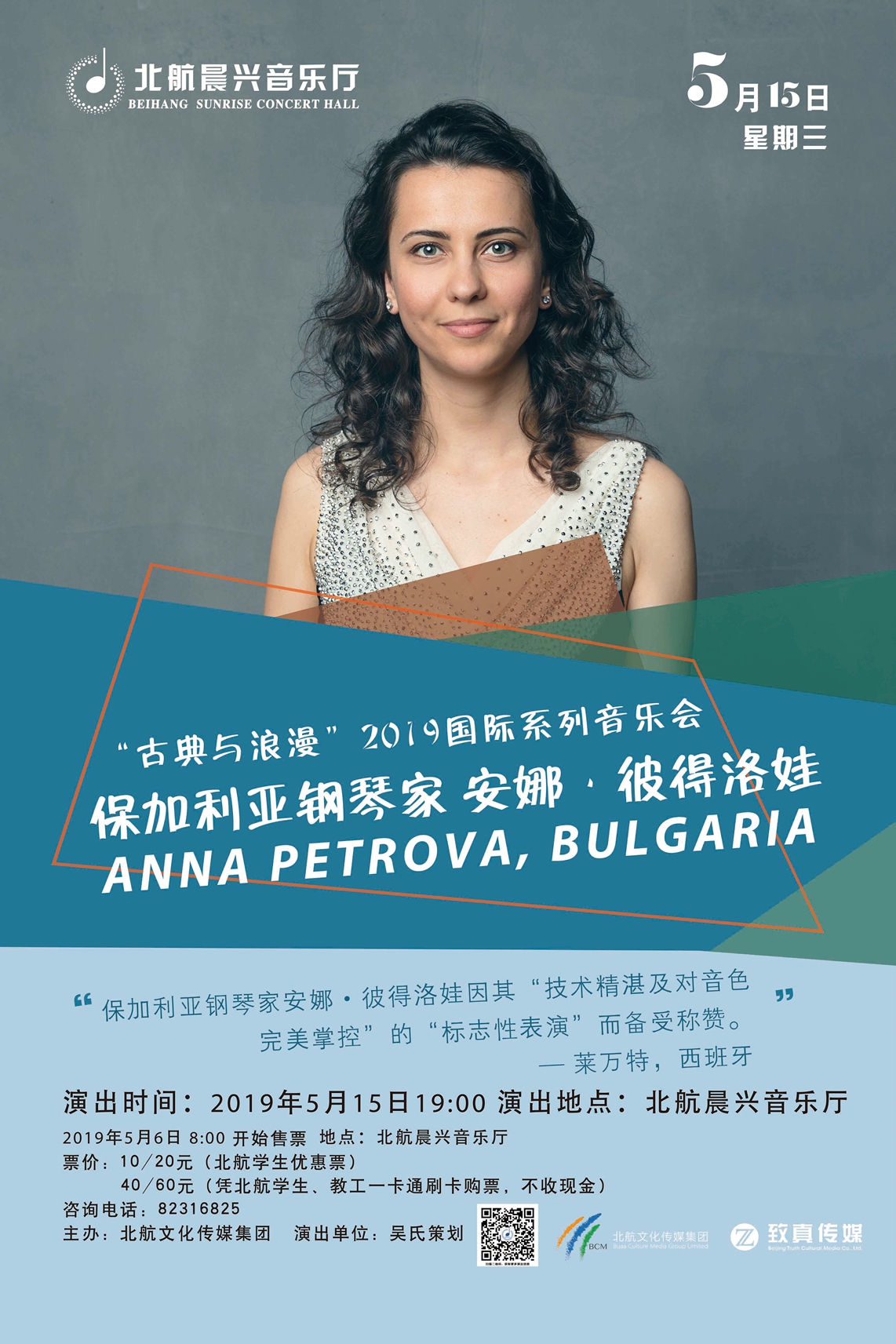保加利亞鋼琴家安娜·彼得洛娃因其“技術精湛及對音色完美掌控”的“標志性表演”而備受稱贊。安娜·彼得洛娃曾摘得多項國際大賽桂冠,包括:巴倫西亞何塞·羅卡比賽、意大利瓦爾蒂多內比賽和圣彼得堡瑪麗亞·尤季娜比賽。安娜是2010年比利時著名的伊麗莎白女王國際鋼琴比賽的半決賽選手,在保羅·古德溫的指揮下,她作為獨奏與瓦隆尼亞皇家室內樂團合作。在她與指揮家菲利浦·昂特蒙執(zhí)棒的北美管弦樂隊首演后,不久又收到了第二份邀約,彼得洛娃因其“超流暢的演奏風格”而受到稱贊。