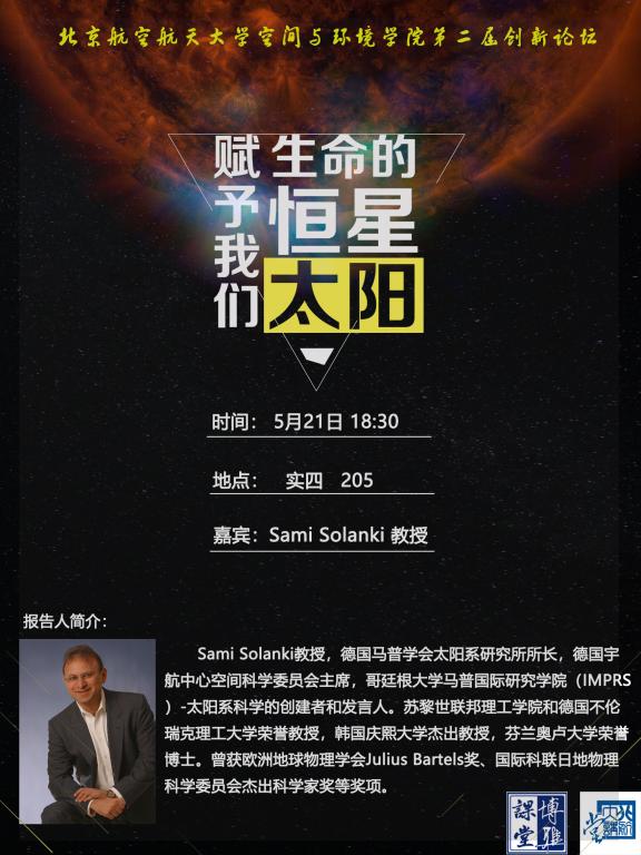 Sami Solanki 教授,德國馬普學會太陽系研究所所長,德國宇航中心(DLR)空間科學委員會主席,哥廷根大學馬普國際研究學院(IMPRS)-太陽系科學的創建者和發言人。蘇黎世聯邦理工學院和德國不倫瑞克理工大學榮譽教授,韓國慶熙大學杰出教授,芬蘭奧盧大學榮譽博士。曾獲歐洲地球物理學會Julius Bartels獎、國際科聯日地物理科學委員會杰出科學家獎等獎項。