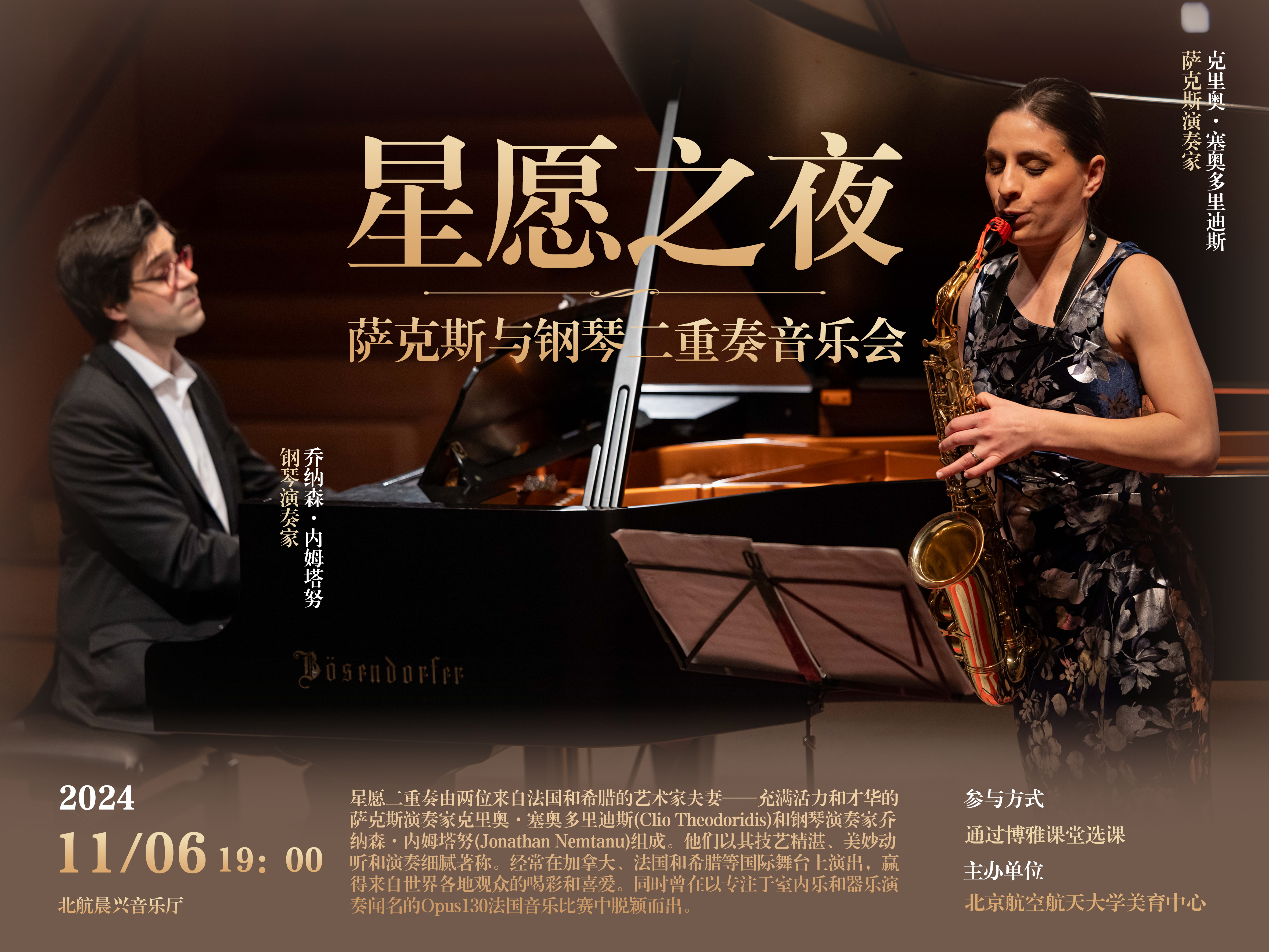 星愿二重奏由兩位來自法國和希臘的藝術(shù)家夫妻——充滿活力和才華的薩克斯演奏家克里奧·塞奧多里迪斯(Clio Theodoridis)和鋼琴演奏家喬納森·內(nèi)姆塔努(Jonathan Nemtanu)組成。
