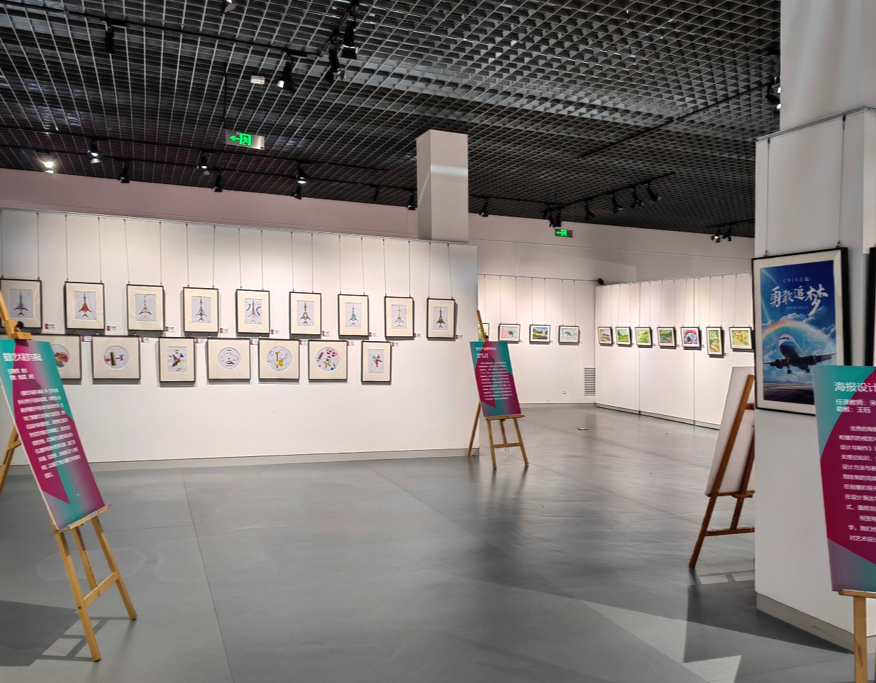 本次聯展以“星夢高遠,美潤啟航”為主題,包括《海報設計與制作》《攝影藝術鑒賞與基礎》《透視與空間》《電影鑒賞與分析》《中國美術史》《轉描動畫技法》《西方美術與觀念》《空天產品美學設計》《水彩畫技法》等課程,包含繪畫、海報、影像等類型作品,集中展示了二百余名學生的創作作品。