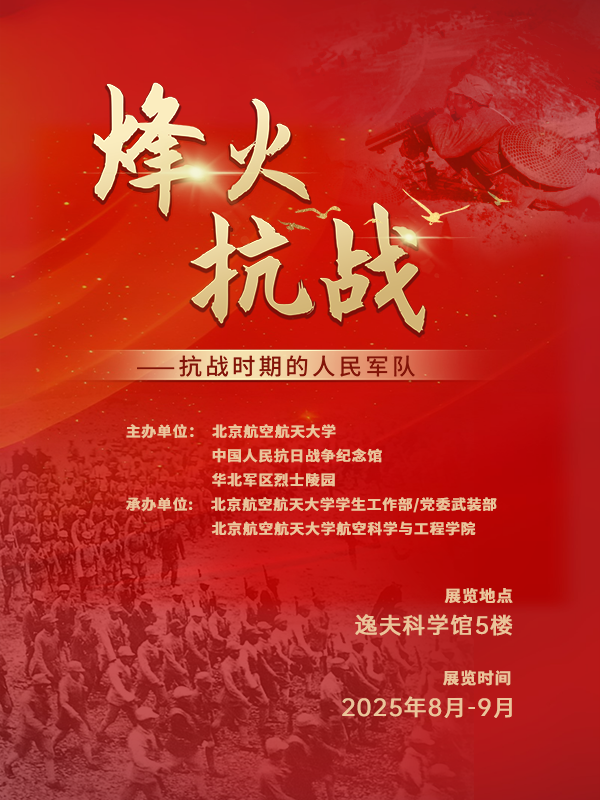 本次展覽《烽火抗戰(zhàn)——抗戰(zhàn)時期的人民軍隊》,由北京航空航天大學、中國人民抗日戰(zhàn)爭紀念館與華北軍區(qū)烈士陵園共同主辦,北京航空航天大學學生工作部/黨委武裝部和航空科學與工程學院承辦,旨在弘揚愛國主義精神,讓后人銘記抗戰(zhàn)時期人民軍隊的英勇事跡。
