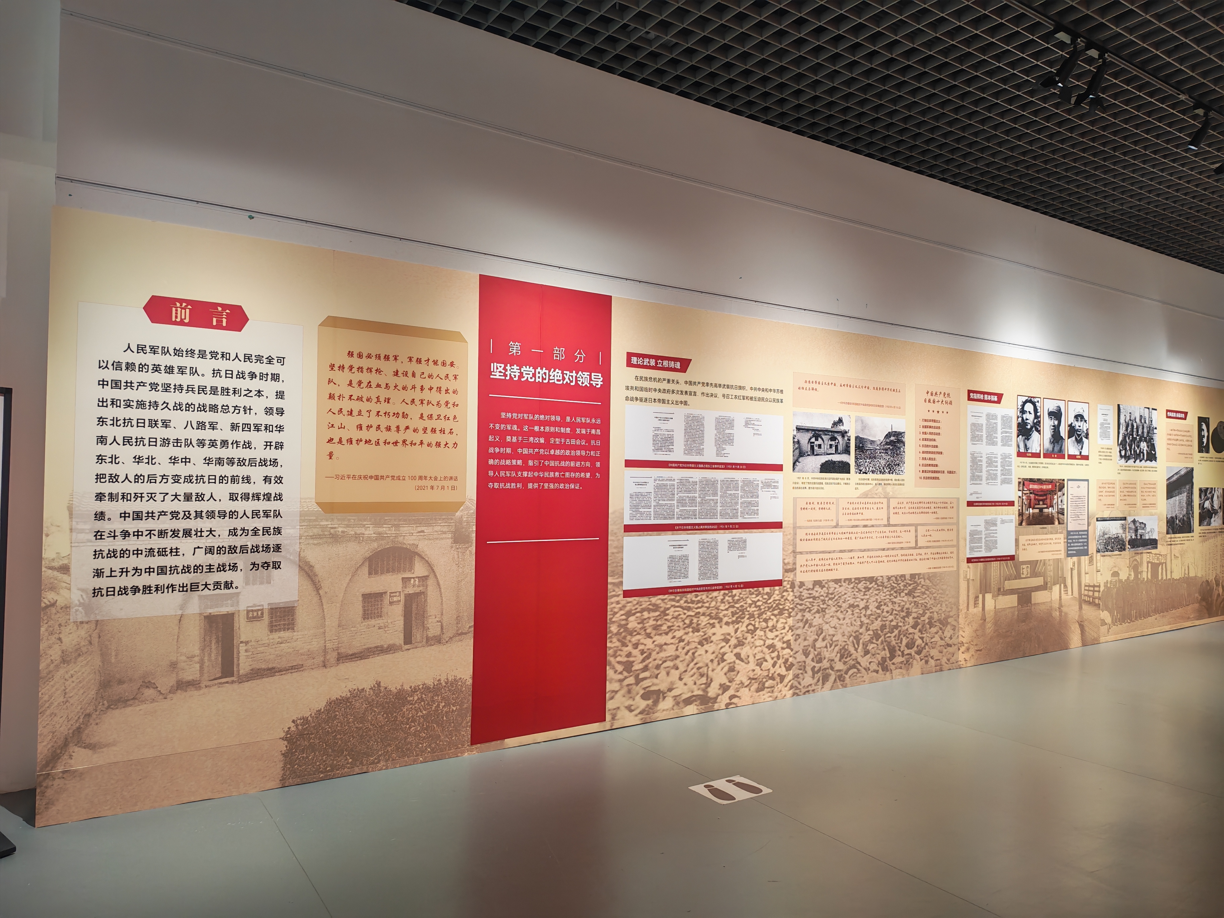本次展覽分為“堅持黨的絕對領導”“戰(zhàn)斗在白山黑水”“浴血在華北敵后”“華中人民的長城”“華南抗戰(zhàn)的旗幟”“從勝利走向勝利”,共6個部分。展覽生動展現(xiàn)了中國共產(chǎn)黨及其領導的東北抗日聯(lián)軍、八路軍、新四軍和華南人民抗日游擊隊等抗日武裝不斷發(fā)展、壯大,成為抗戰(zhàn)的中堅力量,并最終取得了抗日戰(zhàn)爭偉大勝利的光輝歷史。