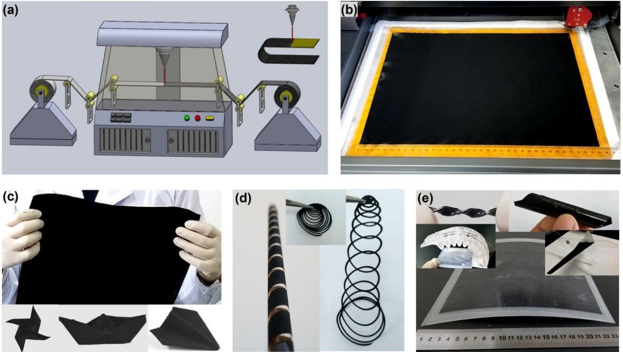 圖1. 石墨烯紙的先進(jìn)激光連續(xù)制造及多模式形態(tài)加工